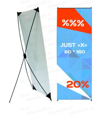 Рекламная мобильная стойка очень легка в установке и практична в эксплуатации. Она выглядит в виде перекрестной буквы «Х». Прочная конструкция состоит из металла и пластика.